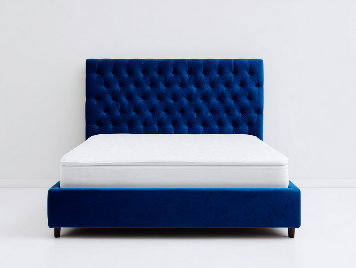 Letto matrimoniale 160x200x115 cm Blu velluto Stile elegante
