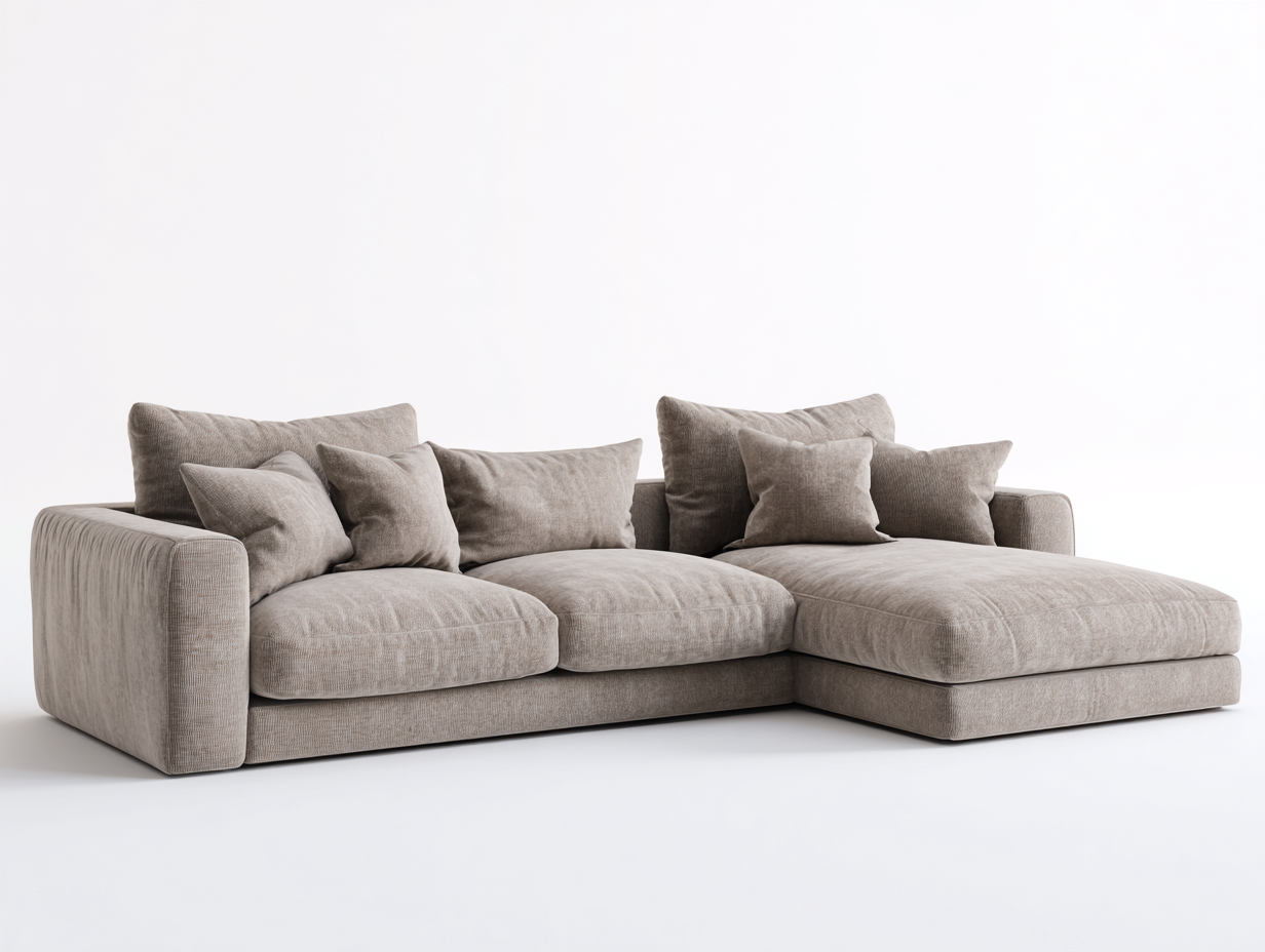 Divano angolare dal design moderno, ideale per arredare il soggiorno con eleganza e comfort.