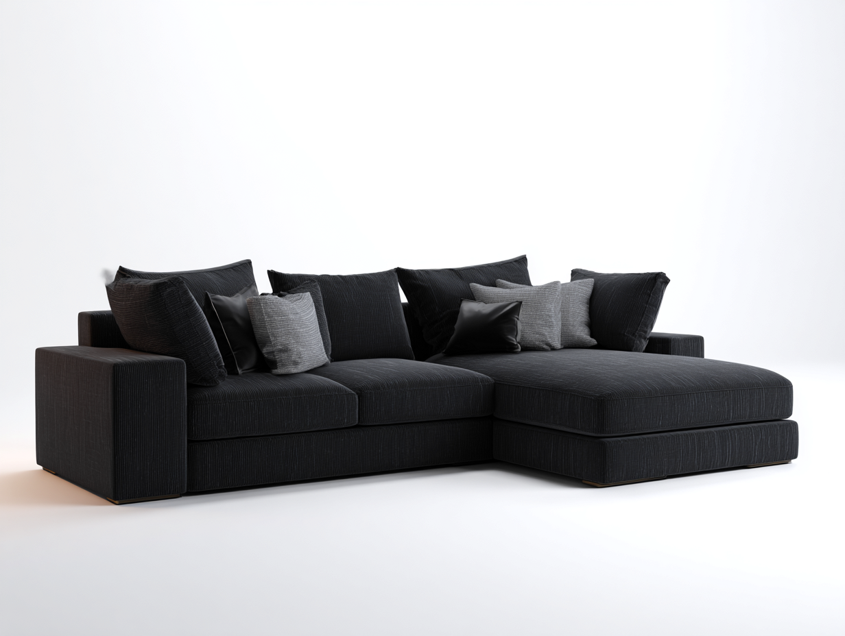 Divano angolare elegante con composizione equilibrata per il soggiorno.