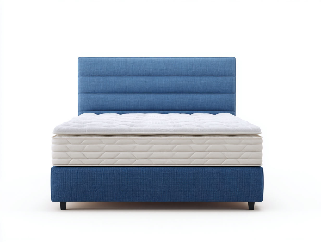 Testiera alta imbottita, base stabile e comfort adatto all’uso quotidiano.